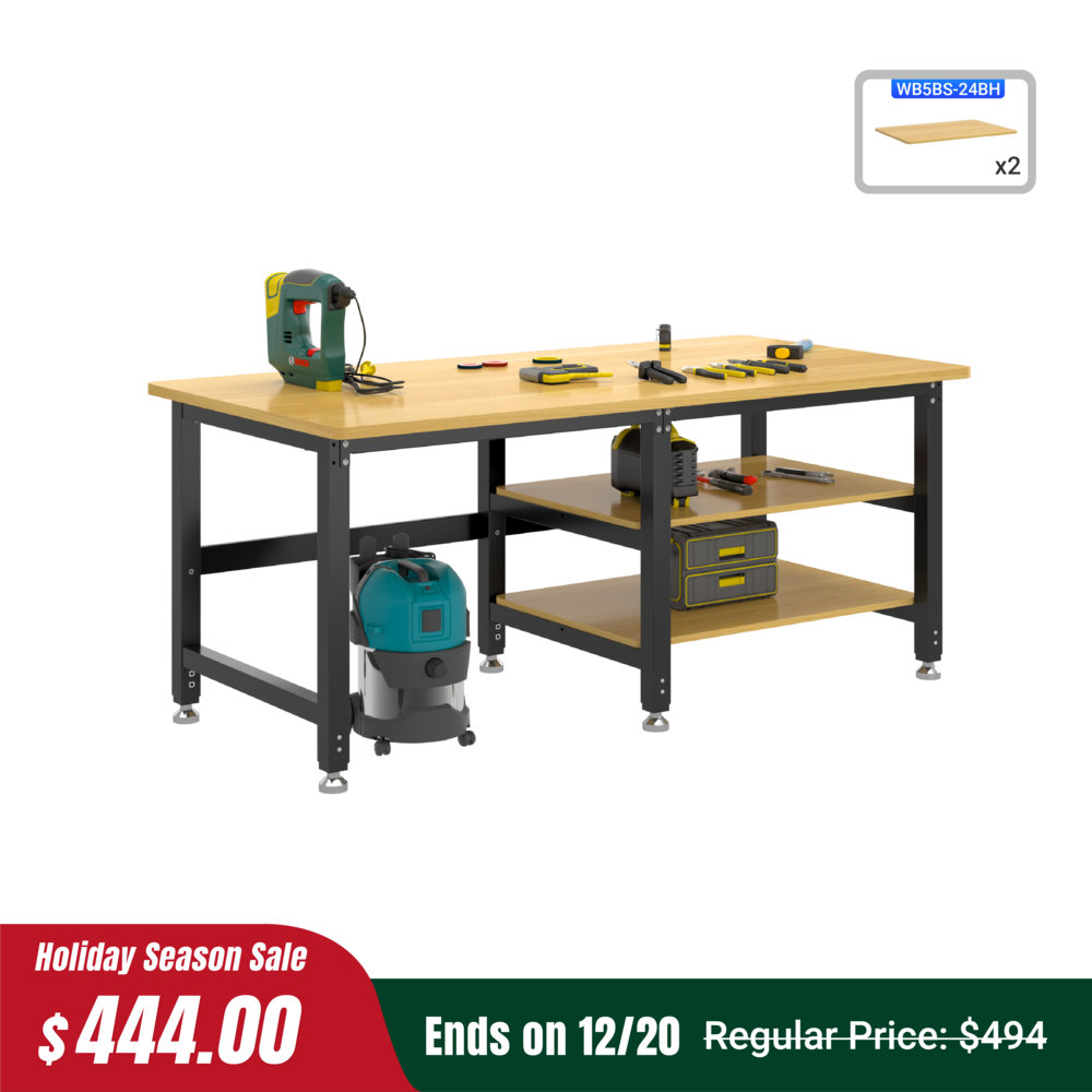 ● Supports up to 3,000 lbs — Built with a high-strength steel frame and rubberwood top, this workbench handles heavy tools, machines, and bulk materials with ease.
